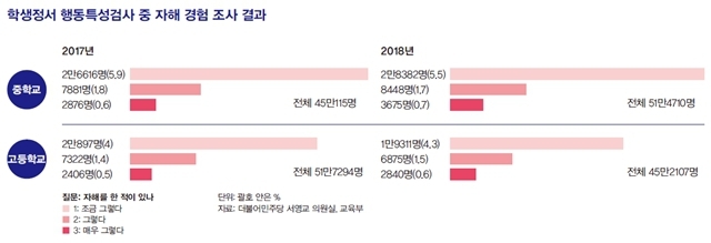 교육부 통계 단독 입수… 자해 경험 있는 중고생 7만여 명